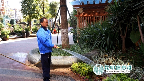 官渡区银海樱花雨小区物管用中水进行园林绿化