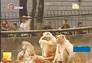 圆通山的猴子等待游客扔零食 视频截图