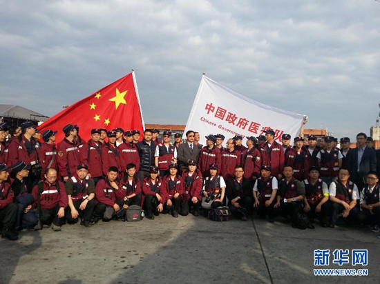27日,中国政府医疗队抵达尼泊尔加德满都,参加该国抗震救灾医学救援。 新华社记者周盛平摄。