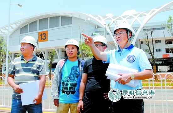滇池会展中心建设项目现场总负责人范品刚在察看工程施工情况。记者周密/摄
