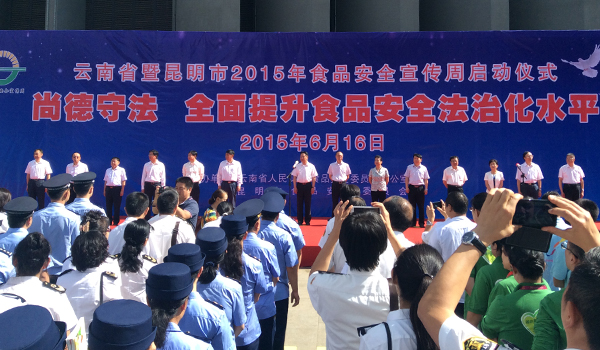 16日上午,云南省暨昆明市2015年食品安全宣传周活动在新工人文化宫举行,此次活动的主题为:“尚德守法·全面提升食品安全法治化水平”。食药监、卫计、农业、质监、工商等部门在现场设有专家咨询、食品检测、企业产品展示等宣传展台,市民可咨询食品安全专家,观看伪劣食品辨别、快检实操演示。