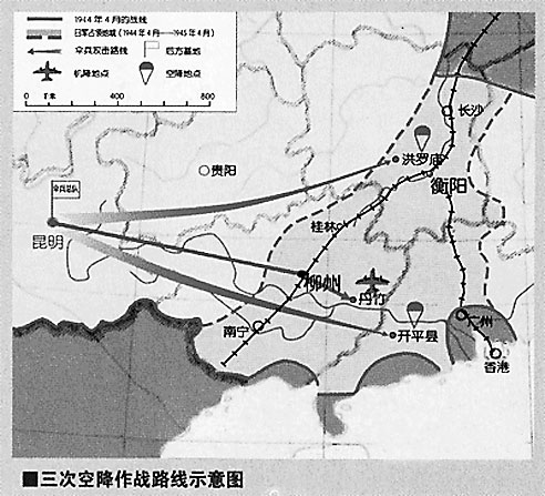 1945年春,抗日战争正面战场展开反攻,日军从南方各省北撤。“鸿翔部队”乘此良机在两广和湖南的日占区进行了3次小规模空降作战: