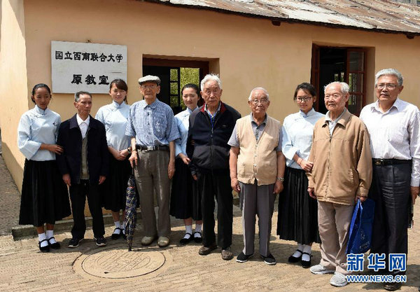5月12日,西南联大老校友与青年学生在一起合影。当日,纪念中国人民抗日战争暨世界反法西斯战争胜利70周年西南联大在昆校友座谈会在云南师范大学举行,西南联大几十名老校友与青年学子相聚在一起,共叙历史,缅怀先贤。大型专题文献《我在西南联大》也在座谈会上首发。