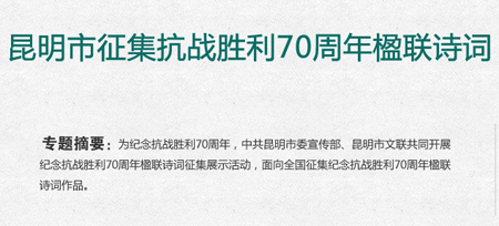 昆明征纪念抗战胜利70周年楹联诗词 一周内上百人投稿400余件