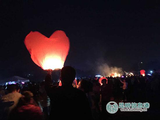 现场观众放孔明灯。记者袁思思/摄