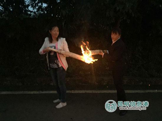 来,借个火。记者袁艳/摄