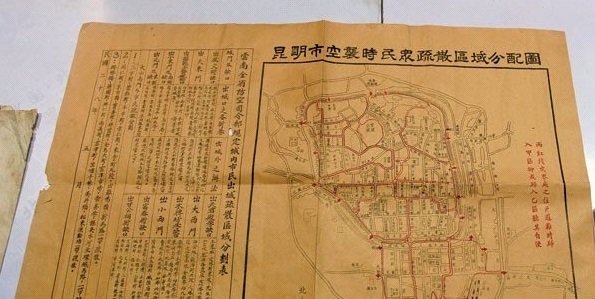 当年,昆明市政当局制定逃难方案,当中有《昆明市空袭时民众疏散区域分配图》、《云南全省防空司令部规定城内市民出城疏散区域分划表》,两份图表告诉市民什么地方的城墙已经挖出缺口,往哪个方向跑才更快;什么街道已被清理,怎么才可以躲得更安全一点。