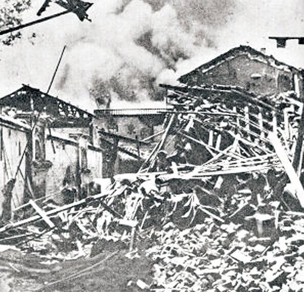 此时,辛慧仙家里的8口人,还没有反应过来究竟情况有多紧急。一颗日军飞机投下的炸弹,直接朝珠玑街38号飞下来。辛慧仙刚从家人手里得到两枚核桃,嘴馋的她正跑去大门口准备用门缝夹开核桃。可就在这时,炸弹从天而降。硝烟和火光顿时将这个小院全部吞噬,辛慧仙被倒塌的建筑压倒,当即失去意识。