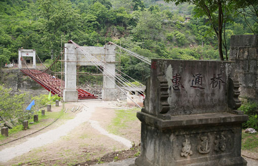 1974年,惠通桥下游400米处,滇西最大的钢筋混凝土拱桥——“红旗桥”建成后,惠通桥退出了历史舞台。而今,人们走到桥边,追昔抚今,缅怀先烈,此情此景,悲壮如往昔。(作者胡滨)