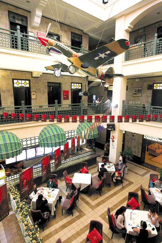 现在“飞虎楼”已成为一家以飞虎文化为主题的滇菜餐厅,摆放有陈纳德的照片以及美军当时的物件,天井悬挂着飞虎队主力战斗机P40模型。餐厅的员工也成了“飞虎队”历史的义务宣传员。