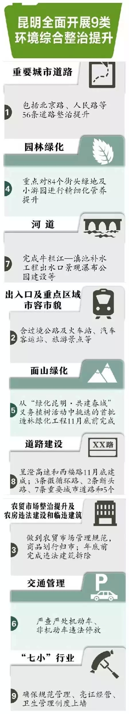 城变大了、路变宽了、人们也有钱了,但是各种社会、环境问题层出不穷。为了还市民一个整洁清新的生活环境;畅通便利的出行环境;昆明市开展市容环境综合整治工作,着力解决城市市容市貌和环境卫生脏乱差等突出问题,进一步提升城市形象和管理水平,实现“安定、祥和、靓丽、添彩、有序、顺畅”的城市管理目标。(昆明信息港)