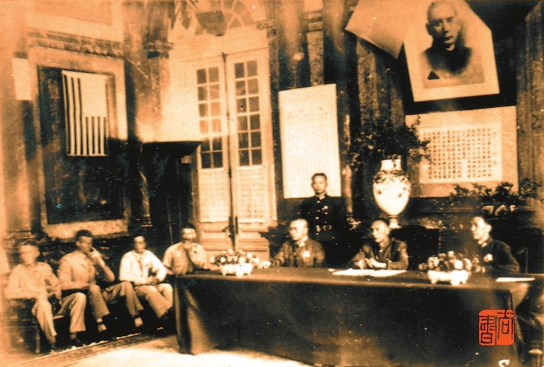卢汉(右二)在越南接受日军投降签字仪式上。供图