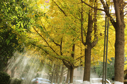 银杏道不知为多少人撑起了清凉的华盖,奋笔疾书的学生、热恋中的年轻人、摄影爱好者。银杏大道成了许多喜欢安静惬意的情调和懂得享受生活的人们的一片净地。