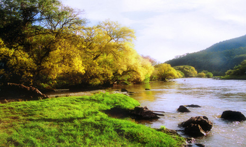 青龙峡以幽、秀之灵气,哺育了一方独特的净土。她是安宁温泉下游一块未开发的处女地,那里山青水秀,风景独好;那里有保存完好的植物群落,有遮天蔽日的参天古木,有烂漫山花、飘香野果和多种野生动物,还有清秀宁静的田园风光和浓郁的民俗风情。江水弯弯曲曲,沿岸古柳成荫。乘皮舟顺江漂划而下,倍感刺激。