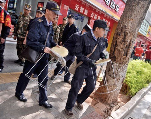 不管什么占了道,一律予以清理。记者赵永峰/摄