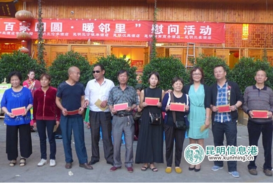 此次“迎中秋 庆国庆 百家团圆 民族和谐”迎双节活动是为期一周的系列活动。这一周来,社区联合公共单位,以多种形式开展了5天的系列活动。9月21日下午2点,云南省邮政公司“公益爱心进社区”活动慰问了辖区10位包括少数民族居民在内的困难人员,给他们送去了节日慰问品——大米和食用油。