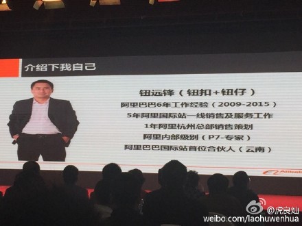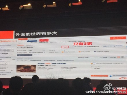 @虎良灿:本届大会最有价值主题演讲,阿里巴巴国际站合伙人钮远峰主讲,阿里巴巴国际站上,咖啡有3200多家卖家,云南只有3家!白芸豆、民族包、望远镜、核桃、三七,云南只有三家五家乃至一家!每年云南人花380亿买东西,卖出去的却只有60亿!
