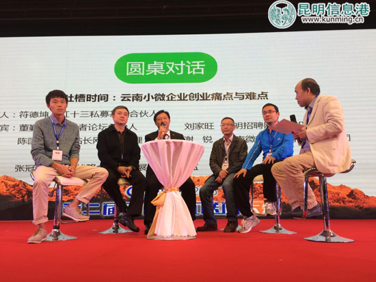 昆明信息港讯 记者上官艳君 10月15日,以“跨界.融合.分享”为主题的云南省第二届互联网大会在昆明世博园隆重开幕,现场嘉宾以圆桌对话形式展开观点碰撞,“吐槽”云南互联网小微企业创业痛点与难点。