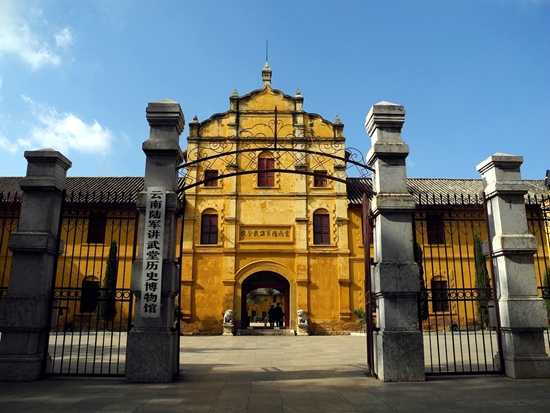 云南陆军讲武堂是我国较早的一所著名军事院校,1909年开办,至1928年结束,共招收学生19批,分步、骑、炮、工四科,第15期还有归国华侨和朝鲜、越南的留学生,历届毕业生中,有些后来成为杰出的无产阶级革命将领,如第3期特别班的朱德,第15期的叶剑英等。
