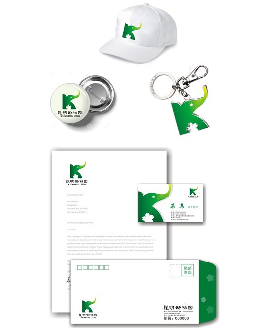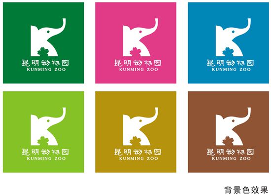 标志将昆明首拼“K”进行艺术变形为“亚洲象”,同时融入“樱花”“生态绿、阳光”等元素有机融合剪裁而成。光影洒射,一只活泼可爱的亚洲象从绿色的森林中走出来,充满野生生活气息。(抬头象更突出动物园内的野性、自然、生态)。樱花怒放,体现动物园内名扬中外的昆明新景“圆通花潮”,书法字体体现园内历史遗迹。绿色主调体现生态景区式野生动物园及四季如春的美丽昆明。