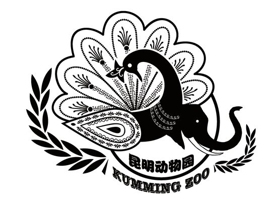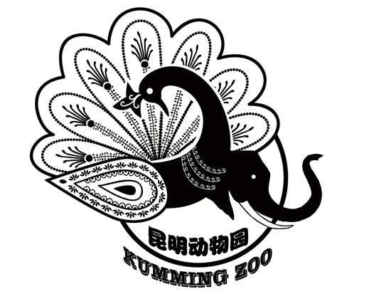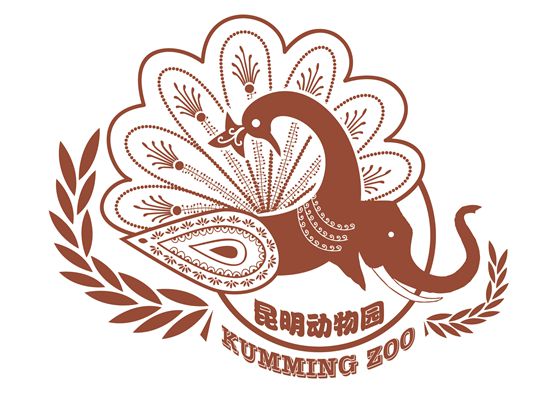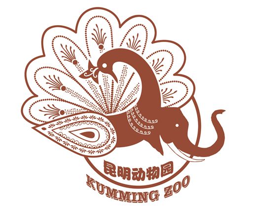 整体是一个图形组合旋转的,云南最具有代表性的动物孔雀和亚洲象,孔雀羽毛花纹采用类似云南的重彩画的点对点设计,颜色是象征大地的褐色,代表了孕育生命的高原土地(色值:C50 M85 Y100 K0),贴近动物园理念,看似简单明了,直观的视觉感受就知道是动物园的LOGO,但实际象征了云南特有动物生命与活力。
