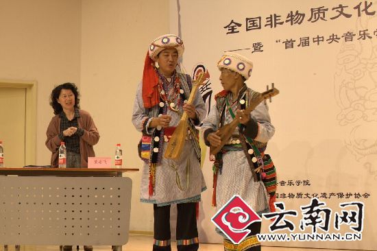 应中央音乐学院、中国非物质文化遗产保护协会邀请,云南艺术学院“民族艺术非物质文化遗产传承协同创新中心”与云南省非物质文化遗产保护中心合作,率41位来自云南滇西北、滇南等地区的国家级传承人和民间艺人于2015年10月23至25日赴京参加了“全国非物质文化遗产保护与研究工作会议”暨“首届中央音乐学院非物质文化遗产(音乐类)展演”,引起了学界与其他与会者的极大反响。此次会议由中央音乐学院、中国非物质文化遗产保护协会主办,中央音乐学院非物质文化遗产研究与保护中心协办。非物质文化遗产的传承与传播如何在社会、公众、高校等不同层面进行探寻与实践; 世界的经验、国家的设计、学界的指导以及市场的萌动之间如何联接等议题,成为人们的关注焦点。