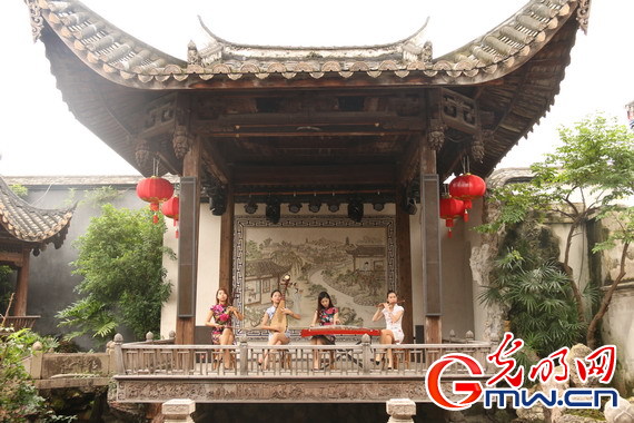 三坊七巷中古色古香的的乐器演奏