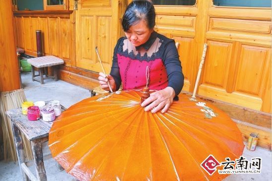 王再恩说,曾经的油纸伞是每家每户的必备品,他小时候寨子里家家户户都在制作油纸伞,再用马匹、骡子驼着,翻山越岭,到缅甸售卖。“这也是象达最早出口的本地特产。”而今,制作繁琐的油纸伞没了市场,也就没有了收益,现在整个寨子只有王再恩和王亮毕两家在坚持做手工复杂的人面竹子纸伞。“年轻人都出去打工了,打工比做伞挣钱。”王再恩说。