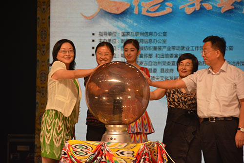 国家互联网信息办公室网络社会工作局副局长孙爱萍、新疆互联网信息办公室专职副主任卢春萍启动仪式。李岩/摄