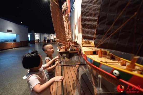 小朋友在看古船模型。记者翁奇羽/摄