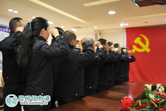 据昆明市公安局相关负责人介绍,十一月份以来,昆明市公安机关为认真学习领会贯彻党的十八届五中全会精神,进一步深化“三严三实”和“忠诚干净担当”专题教育,“秉公执法人民公安为人民”和“严纪律、转作风、树形象”主题教育活动,强力推进市局党委制定的1+12措施的贯彻落实,充分发挥基层党组织的战斗堡垒和党员的先锋模范作用,激励广大党员民警增强责任意识、宗旨意识和服务意识,在全局范围内广泛开展了“学党章、颂誓词、戴党徽、比奉献”活动,现已有557个党组织开展了“学党章、颂誓词、戴党徽、比奉献”活动,9752名党员参加了本活动。