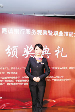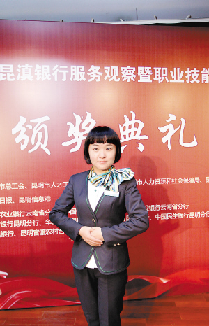 作为“2014年度富滇银行优秀大堂经理”,吴颖认为,大堂经理不仅要对银行金融产品、业务知识熟悉,还要加强自身职业道德修养,爱岗敬业。”