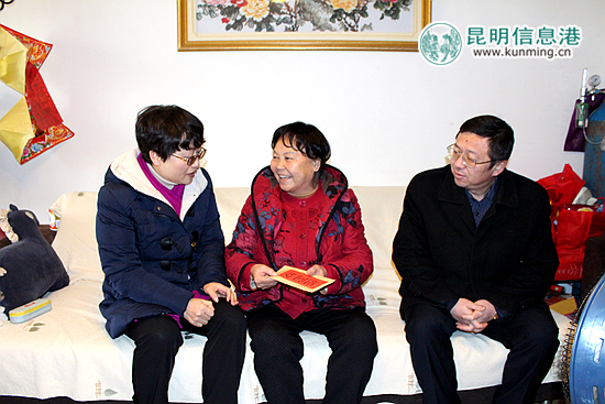 昆明信息港讯 通讯员熊楠 张云洪 2月5日,天气寒冷,在官渡区锐诚商贸有限公司退休老党员龚佩娴的家里,却是一副温暖如春的景象。当天,官渡区区委、人大、政府、政协四套班子的领导专程上门看望慰问,送来节日的祝福和温暖。