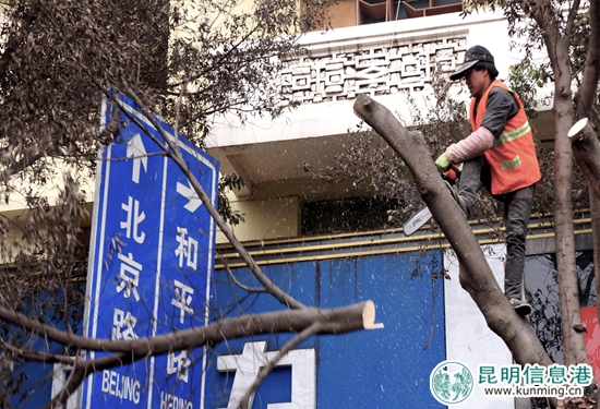 昆明信息港讯 通讯员李伟 林增 近日、热心的市民都能发现,昆明许多街头的行道树,最近都被修剪得剩下了光秃秃的枝干。在官渡区的北京路、彩云北路上,经历了去年末、今年初的几次寒潮后致死的绿化树枝干被绿化部门进行了大规模的修剪,确保受损害的绿化景观尽快修复。