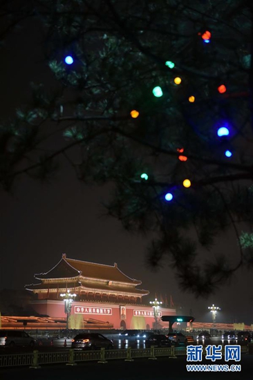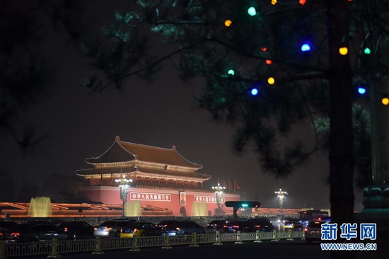 这是3月3日拍摄的天安门城楼夜景。据北京市市政市容管理委员会印发的《关于全国两会期间开启城市照明设施的通知》,3月3日至3月6日每晚18时25分至23时,天安门广场、长安街及其延长线两侧各建筑物和市政设施,按照重大节日标准开启景观照明设施。新华社 记者陈晔华/摄