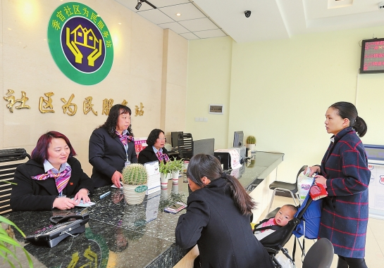 季官社区为民服务站工作人员为群众办理相关手续。记者周灿/摄