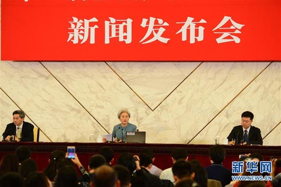 3月4日,十二届全国人大四次会议在北京人民大会堂举行新闻发布会。大会发言人傅莹就大会议程和人大工作相关的问题回答中外记者的提问。新华社记者刘军喜摄