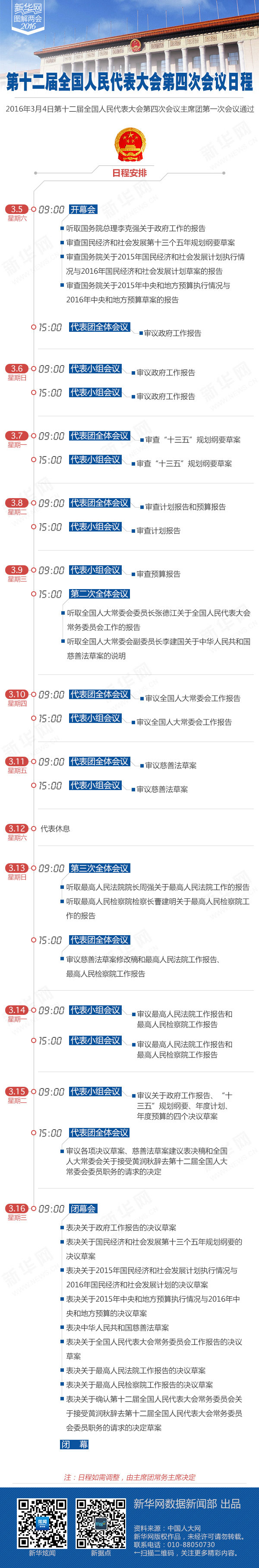 十二届全国人大四次会议日程