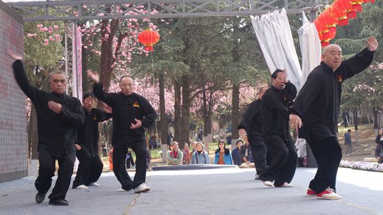 昆明市第十七届樱花节暨第二届“圆通樱潮”非物质文化遗产展活动于2月27日拉开序幕,活动持续至3月31日。为使本届的樱花节活动更加丰富多彩,公园于3月6日在中心区大舞台将举办杂技表演活动。届时,云南省杂技团和省歌舞剧院40多位专业演员将联袂为市民和游客表演歌舞、杂技、魔术等获奖节目。此外,3月10日上午,公园中心大舞台将由昆明武术协会的演员们表演中华传统武术——邹家拳。