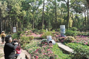 黑龙潭公园依龙泉山麓建成的“杜鹃谷”占地250余亩,有杜鹃30余个品种,数量多达35万余株,是西南地区面积最大的庭园栽培杜鹃花游览区。