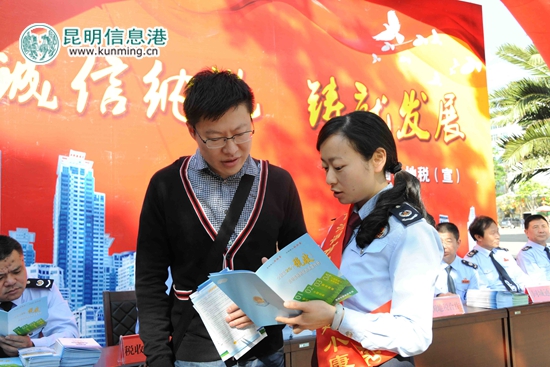 昆明信息港讯 通讯员李伟 张文武 今年4月9日是全国第25个税收宣传月活动启动日,官渡区地税局联合区国税部门、邀请纳税人在官渡广场开展以“依法纳税铸就发展”为主题税收宣传活动。