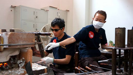 土法搭建的熔炉内配好的原料经融化,热浪袭人,9名参赛者的现场比赛气氛也十分火辣。规则单位时间6分钟内,每队参赛者滴出的单面凸5号棋直径误差不能超过0.5毫米;双面凸4号棋不仅直径误差不能超过0.5毫米;高度误差不能超过0.1毫米,最后以数量多、成品率高者获胜。