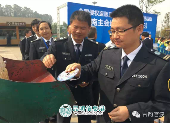 昆明信息港讯 通讯员夏雯 近日,为迎接“4.26”世界知识产权日的到来,官渡区积极组织参与在昆明世博园正门广场举行的云南省“集中销毁侵权盗版制品及非法出版物销毁活动”,本次销毁活动官渡区共销毁侵权盗版及非法出版物六万余件。