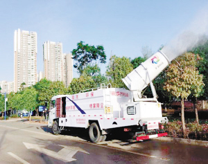 当前,我国大气污染形势严峻,以可吸入颗粒物(PM10)、细颗粒物(PM2.5)为特征污染物的区域性大气环境问题日益突出。就昆明而言,随着城镇化的深入推进,能源资源消耗持续增加,在建工地比较多,扬尘污染相对严重,大气污染防治压力有增无减。为全面构建“十三五”生态文明建设,深入贯彻落实《大气十条》、认真开展《昆明市2016年度大气污染防治实施计划》、全面提升盘龙区环境空气质量水平,盘龙区环境保护局创新治理手段、及时安排和部署,积极开展提升大气环境质量专项整治行动,在充分借鉴周边县区做法的基础上,结合盘龙区实际情况引进了一台多功能抑尘雾炮车。