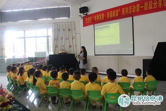 昆明信息港讯 通讯员熊楠 张云洪 5月31日,官渡区“书香家庭 幸福阅读”系列活动第一阶段分享会在官渡区康尔贝幼儿园举行,悠扬的乐曲声中幼儿园的孩子们在与凡阅读馆老师的带领下,倾听了《为爱朗读》的绘本故事。