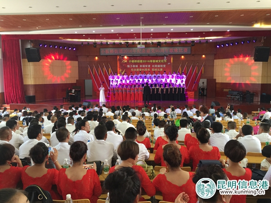 昆明信息港讯 通讯员王丽华 郭武辉 6月25日,官渡区小板桥街道举行“红歌献给党”歌咏比赛,来自街道的17个代表队同台竞技,共同唱响爱国、爱党、民族团结的红色主旋律。