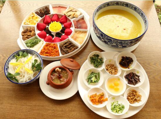滚烫的汤头配合新鲜的食材,用筷子挑两下,一边吹着热气一边嗞溜嗞溜地吸着,吃完再端起大碗喝两口汤,摸着肚子,说不尽的心满意足。除了米线,各种名菜也是极具特色。汽锅鸡鸡块鲜嫩,汤汁甜美;龙翔小猪蹄,皮肉筋道,香辣爽口;双龙花椒鸡,鸡肉细嫩,麻辣鲜香……