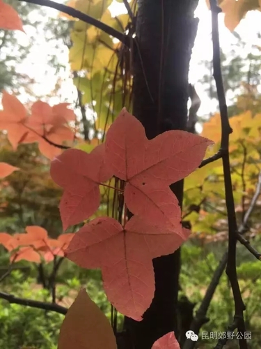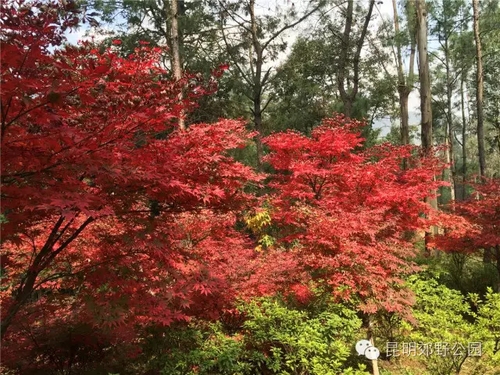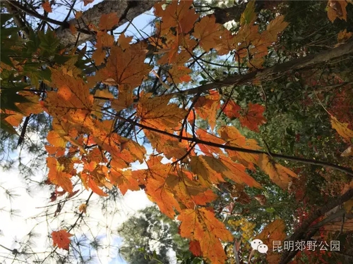 别以为只有植物园是昆明赏枫的好去处。知道郊野公园吗?那无疑也是祭秋赏叶的好去处。不只是一条林荫道,不仅仅只有枫香,好多年了,一点一点,一棵一棵,一丛一丛,一片一片,一山一山,枫香、红枫、鸡爪槭、红枫、黄连木渐渐爬满了整个园区,都是为秋而生的圣灵啊!艳红,桔红,紫红,大红,柠黄,橘黄……层林尽染,美得不可方物。