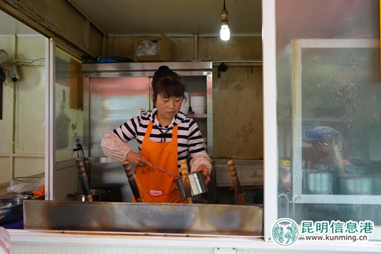 早几年,没有分店时,要到老店甩上一碗正宗小锅米线,非得排上半个小时以上的队,不论是开车来的白领老板,骑电动车来的打工族,周边学校学生,还是趿拉 着一双拖鞋的街坊老邻居,都得拿上一个写着号码的小纸片等着老板娘叫号,到后来,干脆有人当起了黄牛,两块钱一张转卖排朝前的号码牌。老板娘告诉我们,那个时候,一天最少要卖四千碗米线。