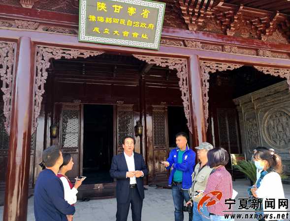 同心县党史专家杨文元向记者们讲述那段历史